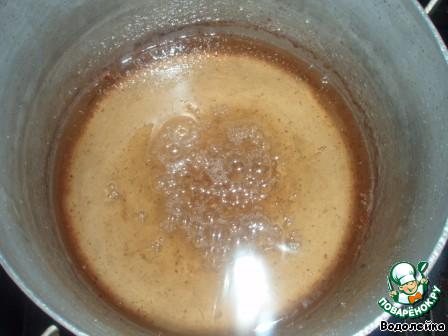 Теперь готовим крем. В кастрюлю положить 2 ст.сахара + 1 ст. воды,довести до кипения и варить на слабом огне минут 10-15, помешивая.