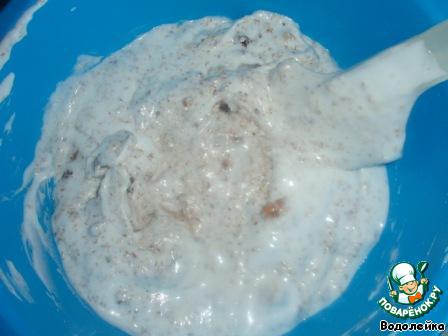 Делим крем на две части. Одна остается такой же, а во вторую добавляем нашу фруктово-ореховую начинку (предварительно слить бренди) и перемешать.