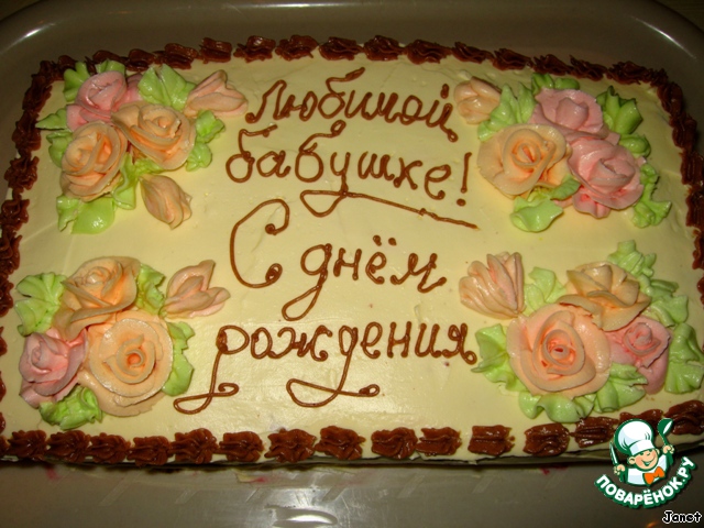 | Самый любимый торт моей бабушки, она аллергик и только он подходит ей! Всегда просит меня украсить его, говорит, он вкуснее тогда... |