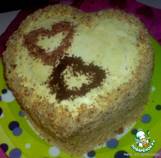 На следующий день вырезаем сердце, кремом смазываем бока и верх.