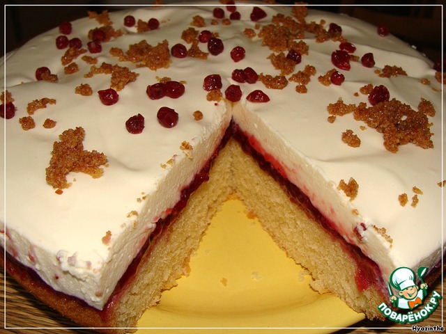 | Хоть торт, хоть пирог... не слишком сладкий, с ягодной кислинкой и хрустящей посыпкой... Тесто известное - на минеральной воде, делается за 5 -7 минут. Рецепт из журнала "tina", думаю, всем понравится... |