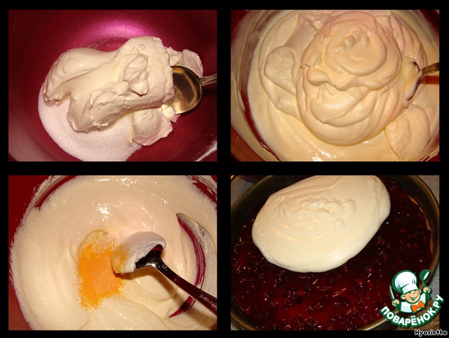 а сами смешиваем творог, сметану, цедру апельсина и 75 гр сахара.