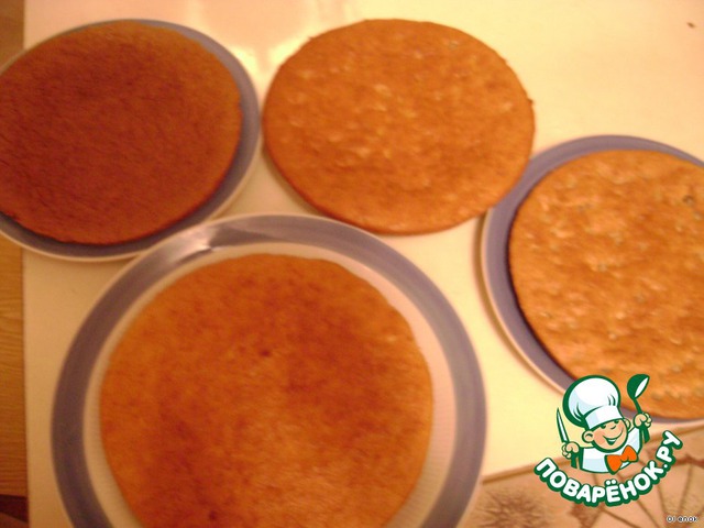 Выпекаем каждый корж при 200 градусах в течение 15 минут.