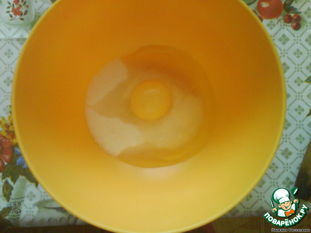 Яйцо взбиваем с сахарным песком. Я взбивала венчиком.