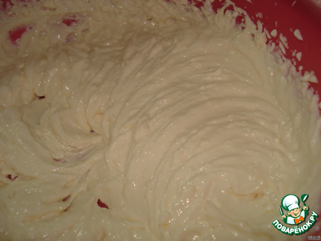 Сливочный сыр взбиваем с маргарином. После, добавляем ваниль и сахарную пудру. Все хорошенько взбиваем до однородной массы.