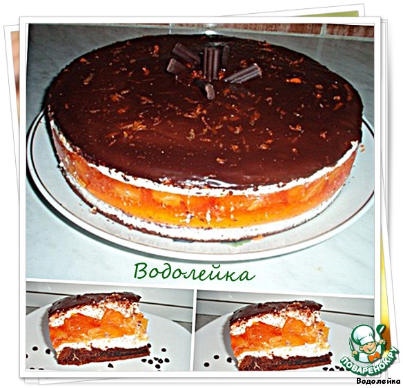 | Вариант торта с желейной прослойкой. Получается вкусный шоколадный тортик с нежным кремом, фруктами и желе. |