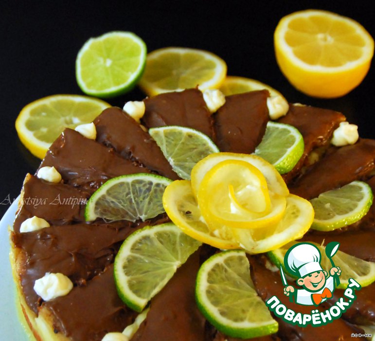 Украшаем торт по желанию, остатками сметанного крема и дольками лимона и лайма. Можно подавать к столу.