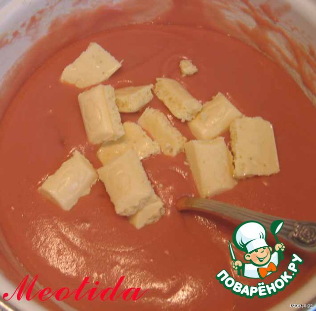 в готовый горячий вишневый крем добавляем сливочное масло, шоколад, хорошенько перемешиваем и оставляем остывать