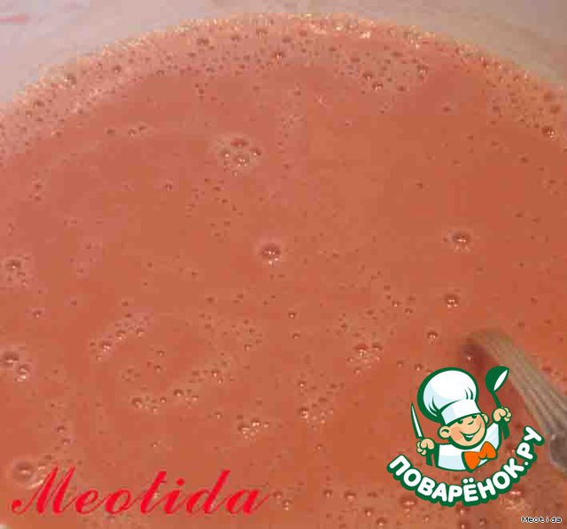 сок вливаем постепенно в яичную смесь, размешиваем, ставим "на водяную баню" и готовим "до загустения"