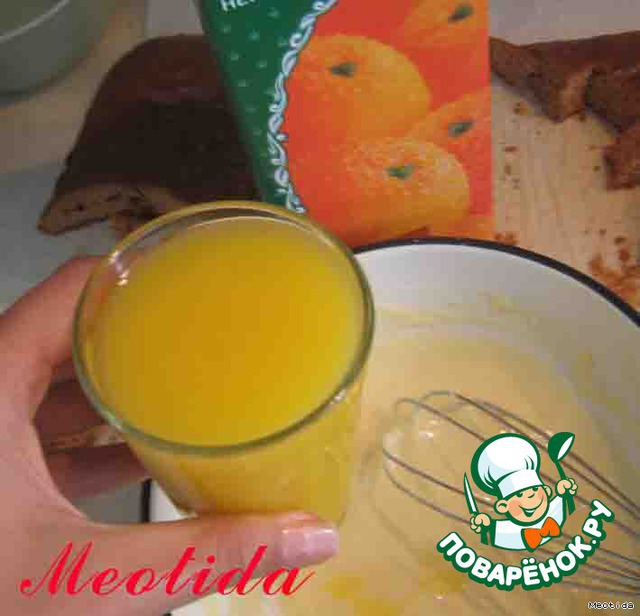 постепенно добавляем апельсиновый сок, постоянно перемешивая крем ложкой