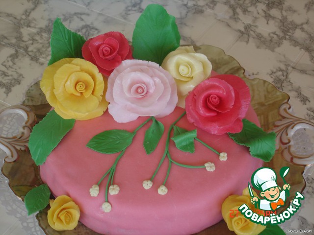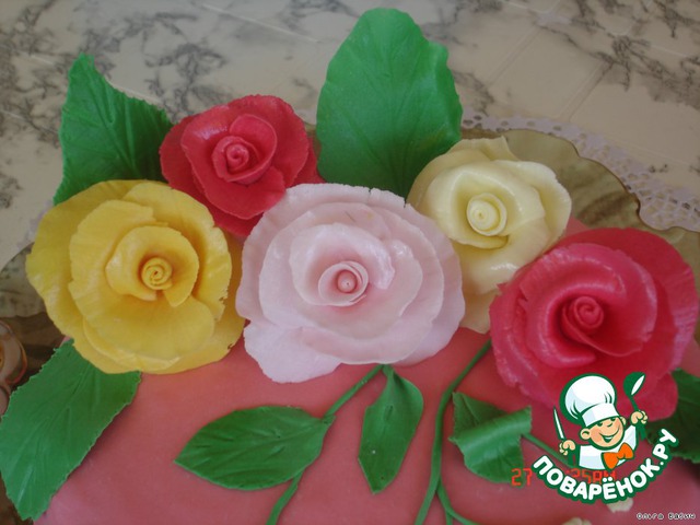 Далее, украшаем по желанию. Я украсила мастикой и сделала розы из мастики.