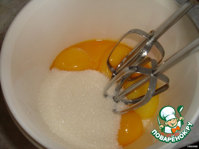 Желтки + сахар - взбить.