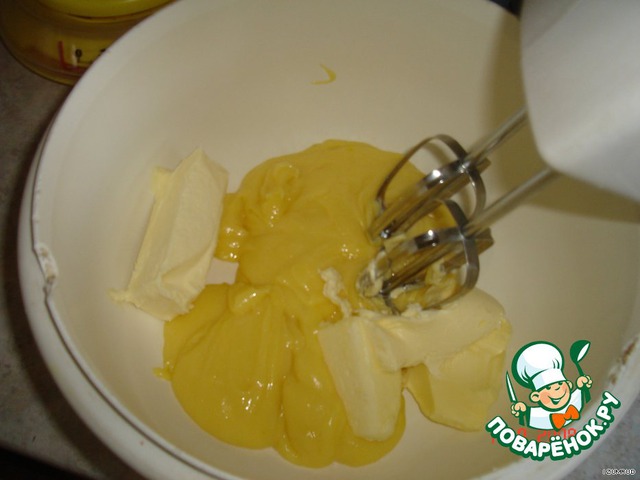 К остывшему желтковому крему добавить масло и взбить.
