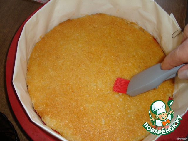 Корж пропитать сиропом.