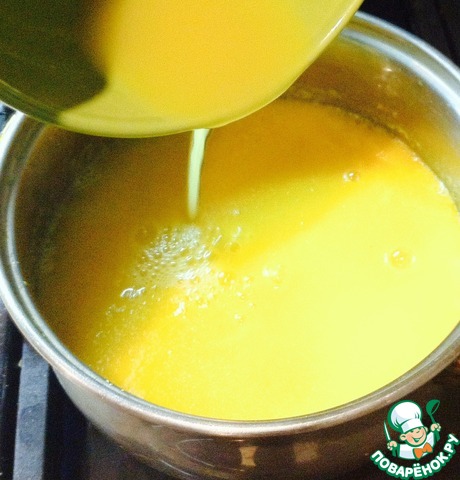 В мандариново-тыквенную смесь добавить оставшийся коричневый сахар и довести до кипения, добавить апельсиновый сок с агаром и кипятить 1 минуту.
