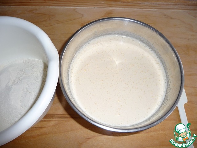Поставить в теплае место на 1,5 -2 часа до образования на бисквите корочки.