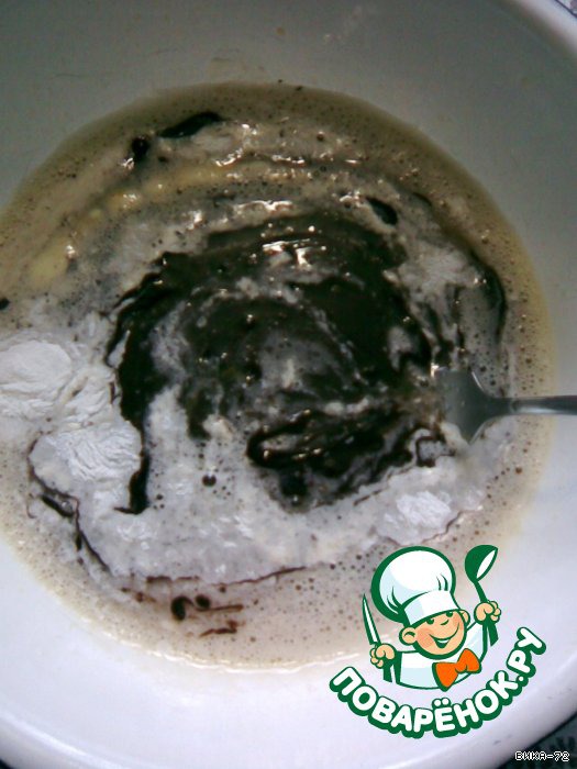 потом в оставшуюся белую глазурь добавляем чуть-чуть темной, чтобы получить светло-коричневую для ушей и нижней части мордочки;