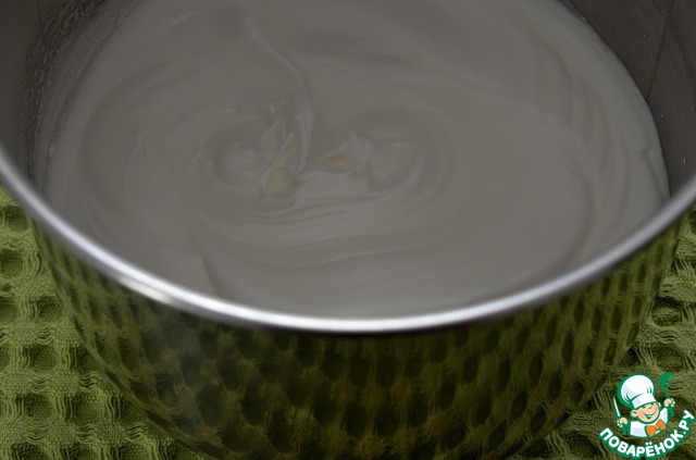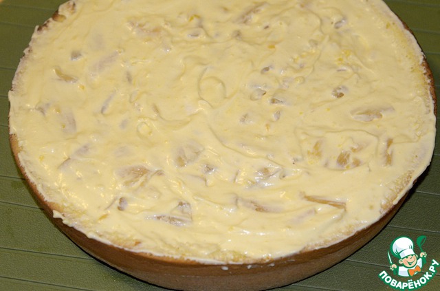 Наполнить кремово-ананасовой массой нашу бисквитную "коробку", стараясь придать верху выпуклую форму.