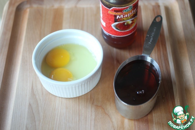 Далее, не переставая взбивать добавляем яйца и кленовый сироп.