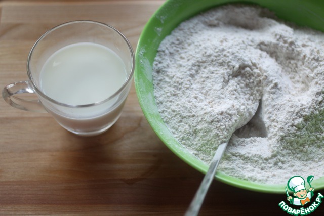 Смешайте в миске все сухие ингредиенты. И вводите в нашу смесь поочередно с молоком. До однородной консистенции.