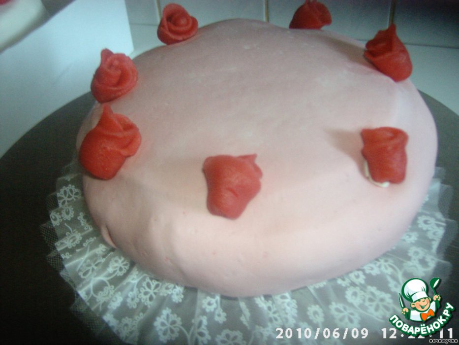 Все торты я украшала мастикой из маршмеллоу. Цветы делала из марципана.
