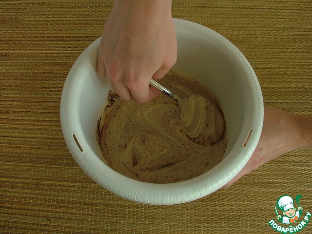Аккуратно подмешиваем масло, 70 мл йогурта и шоколад.