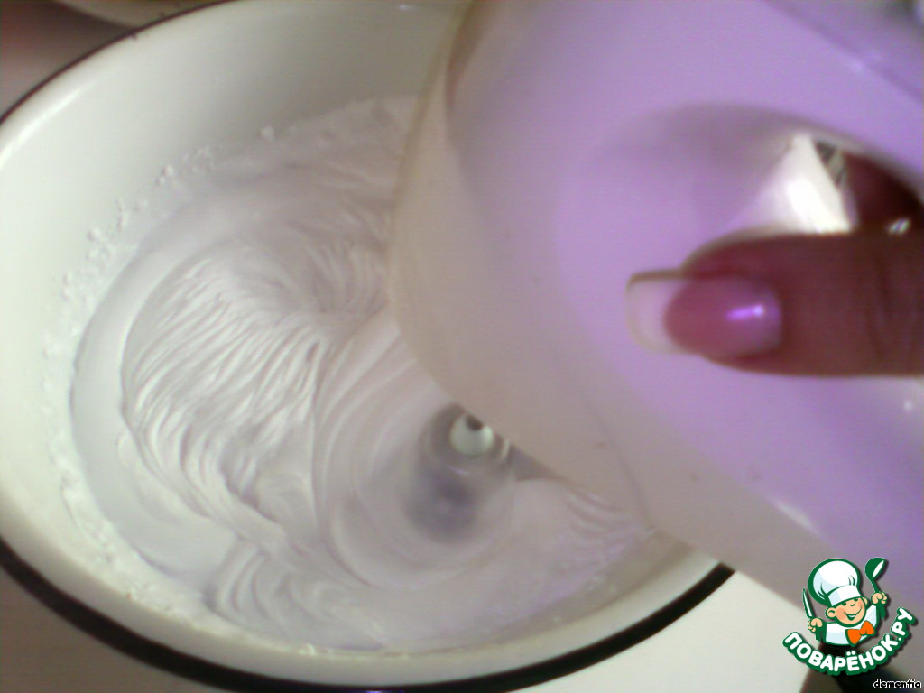 Сливки взбиваем минут 7 до устойчивой массы. (Если растительные сливки без сахара, то добавляем сахарную пудру по вкусу)