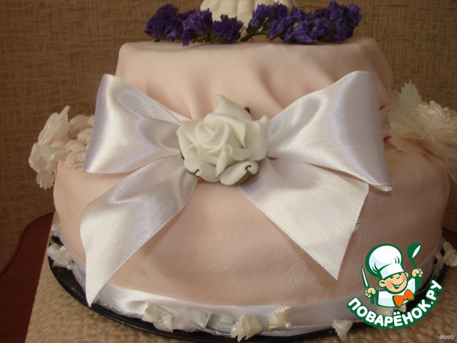 | Начну по порядку: моя мама и мой папа решили официально оформить свои отношения после долгой совместной жизни. Это очень длинная история... Суть в том, что завтра состоится их свадьба! И по этому поводу я решила сделать торт. Первый раз работала с мастикой, так что не судите строго! Не могла не поделиться с вами, дорогие поварята, итогом своих трудов... Это не подробный рецепт торта, а способ украшения. |