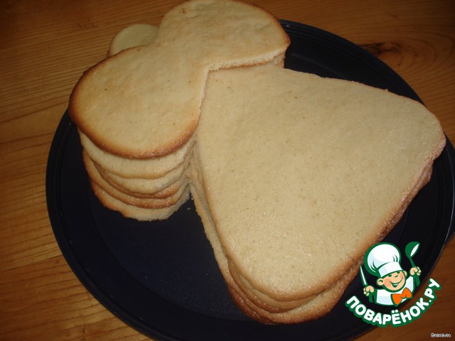Немножко предистории: когда-то такой тортик получился у нас совершенно случайно, после неудачной попытки испечь печенье «Каллы», не получилось нам завернуть эти печенюшки в прекрасные цветы и пришлось сложить испеченные лепешки в посудину, смазав сметанным кремом. Они очень быстро пропитались и очень понравились моей Дашуле, потом по ее просьбе еще не раз повторяла такой тортик, правда пекла уже полноценные круглые коржи.