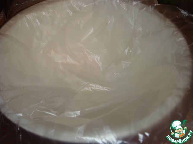Выложить пищевой пленкой круглую глубокую форму (можно миску).