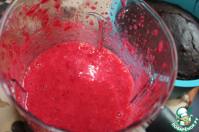 Добавляем готовую кашу в ягодное пюре. Еще раз взбиваем в блендере.