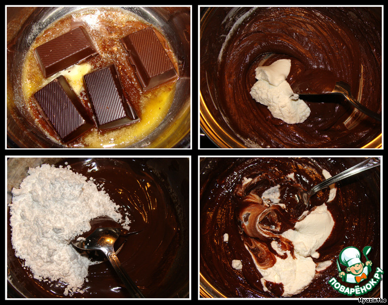 Итак, растапливаем масло с шоколадом, взбиваем ложкой.