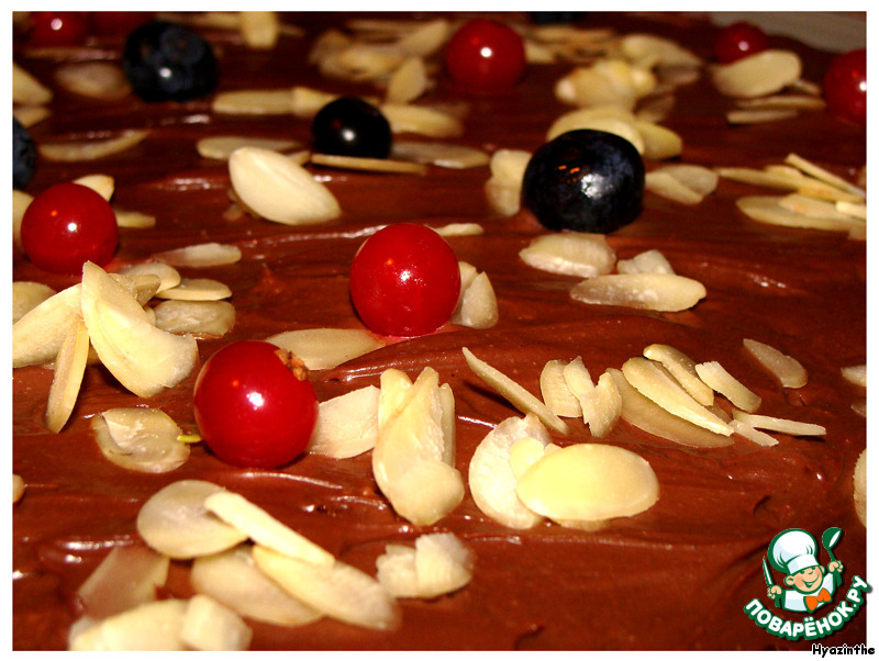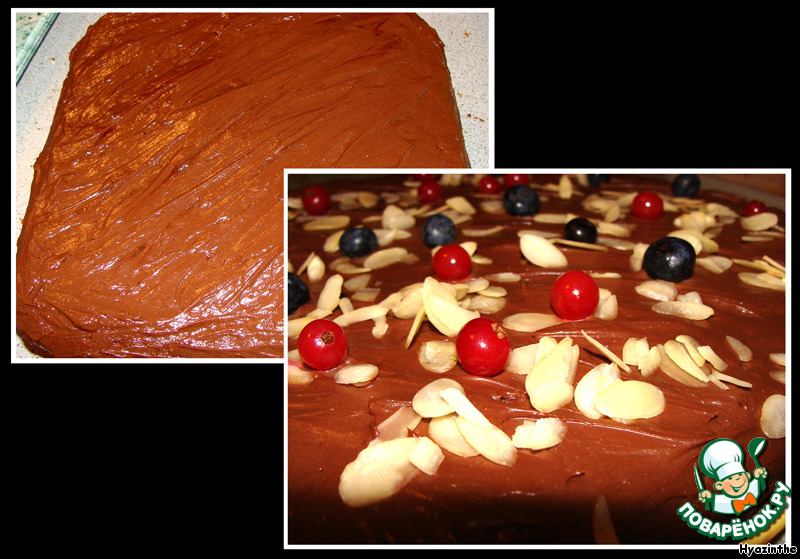 Украшаем по желанию (у меня миндаль и свежие ягоды - черника и красная смородина).