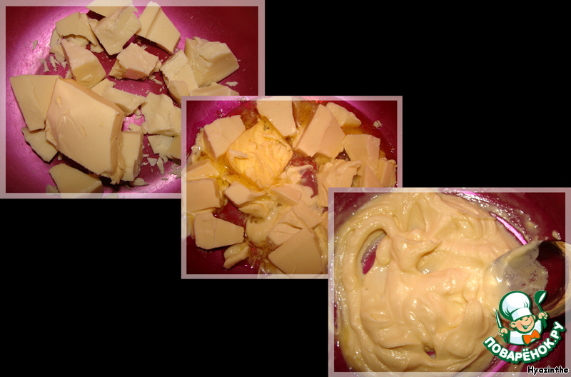 Затем по ложке добавляем в шоколад Frischkaese, хорошо растираем до однородной массы. В какой-то момент может показаться, что масло отслаивается, просто продолжайте растирать и все получится, как надо.