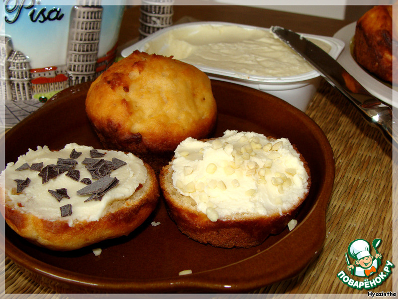 В оригинальном рецепте крем из белого шоколада и Frischkaese (не знаю аналога этому продукту в России, возможно, сейчас уже появился - похож на прессованную творожную массу, может быть слегка соленым).