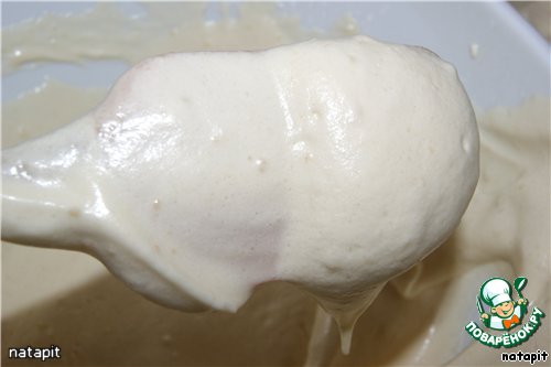Тесто получается гладкое, с хорошо и равномерно вмешанными белками, без комочков.