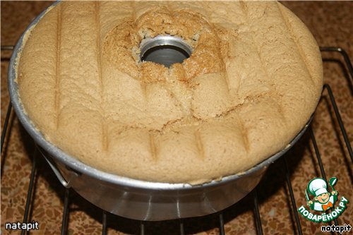 Подрезать бисквит по краю формы и вокруг трубки, перевернуть на блюдо.