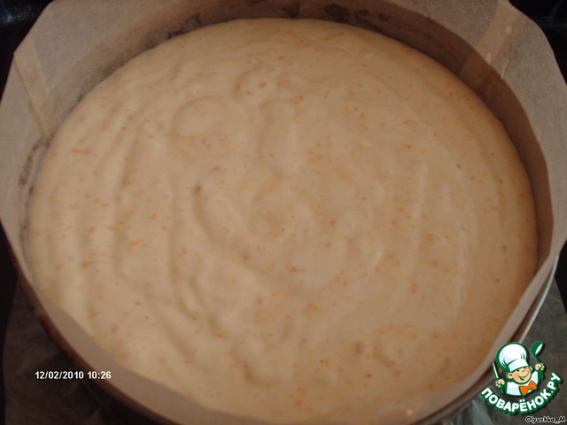 Теперь подготавливаем форму для выпечки и включаем духовку. Это необходима сделать в начале, чтобы уже готовое тесто сразу(!) поставить в духовку. Форму по бокам я обкладываю пергаментом, чтобы тесто в духовке не вытекло (хотя форма высокая), т.к. оно хорошо подымается.