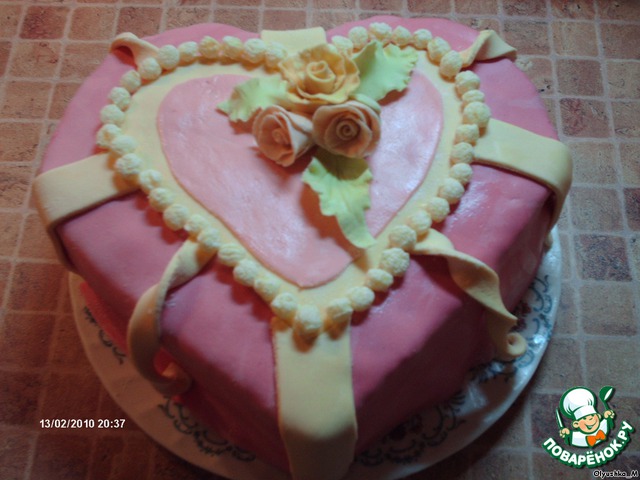 Вот такой тортик у меня получился. Украшение из мастики и кукурузные шарики.