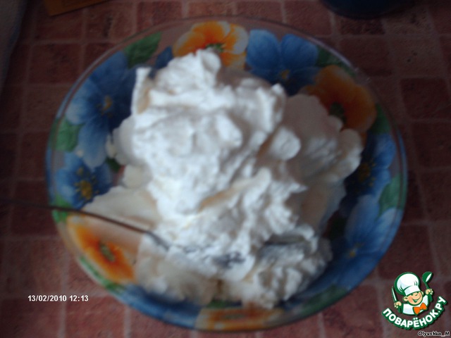 Теперь приступаем к крему. Сперва взбить сливки. Чтобы сливки взбились точно, надо посуду, в которой Вы будете их взбивать, поставить на минут 10-15 в морозилку, и тогда только наливать туда холодные сливки и начинать их взбивать.