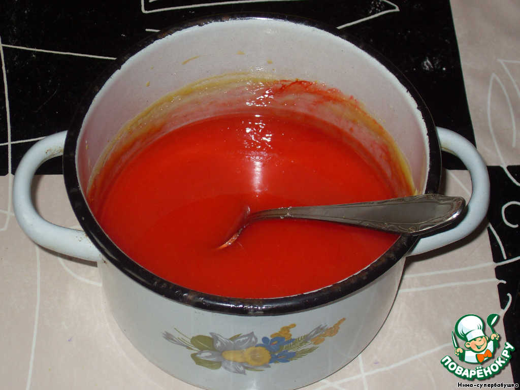 Яйца хорошо растереть с сахаром. Добавить размягченное масло, цедру и сок апельсина и лимона и крахмал, разведенный в небольшом количестве воды. Поставить на водяную баню. Все время мешать венчиком, пока масса не загустеет (около 15 минут). Остудить. Подкрасить пищевым красителем в красный цвет.