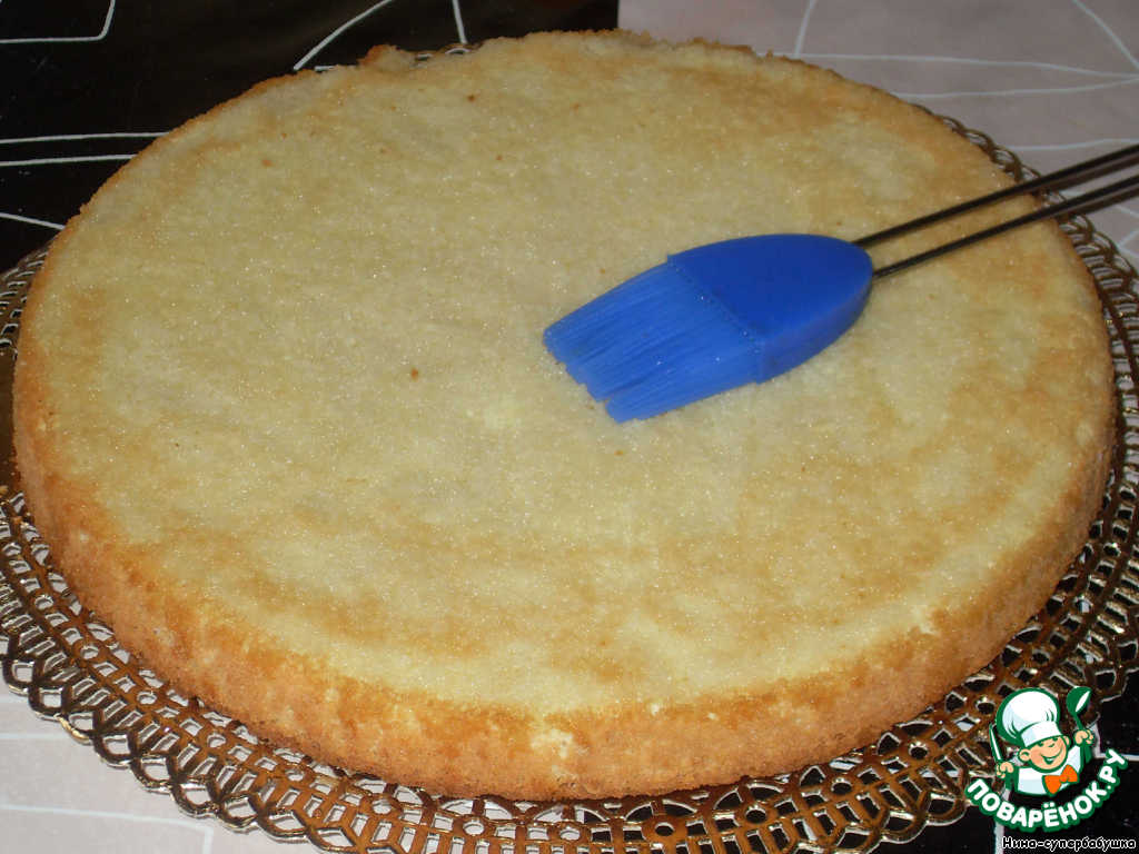Бисквит перевернуть "вверх ногами". При помощи кисточки смочить пропиткой.