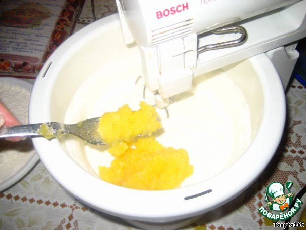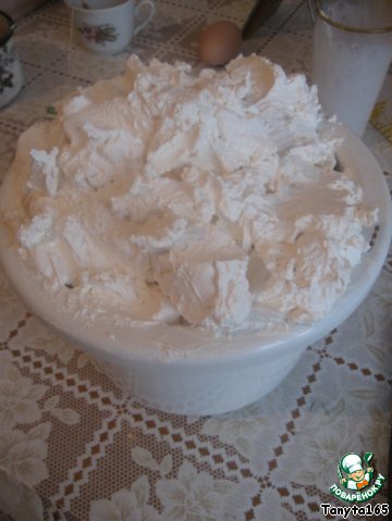 Сливки взбить и добавить сгущёнку, йогурт или творог.