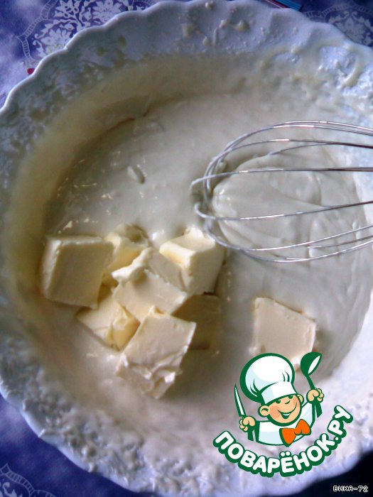Оставшуюся сгушенку и мягкое сливочное масло продолжаю взбивать