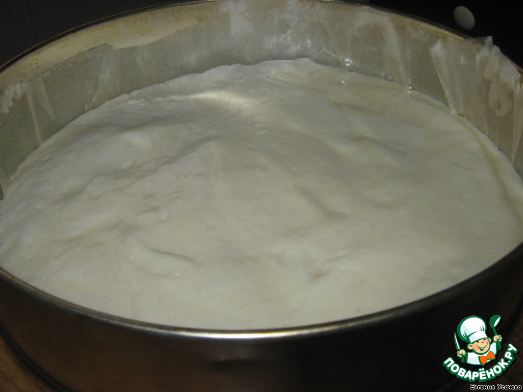 Форму с высокими краями смазать растительным маслом, выложить промасляной пекарской бумагой и осторожно выложить тесто. Выпекать при температуре 200 градусов 15-20 мин, затем уменьшить температуру до 160 градусов и продолжать выпекать в течение 25 мин.