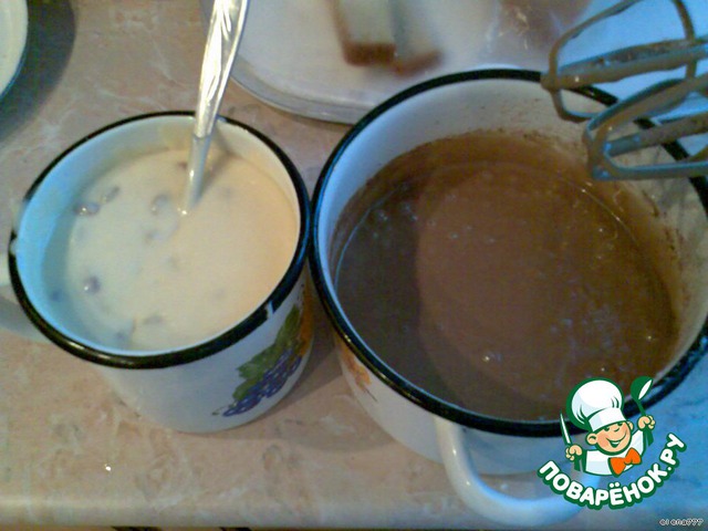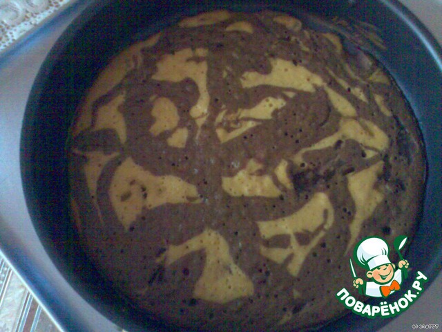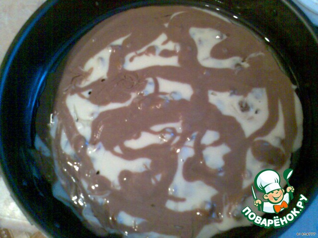 У меня осталось понемногу тёмного и светлого теста, я вылила их, чередуя - вобщем, смешала оба теста, по очереди выливая в форму.
