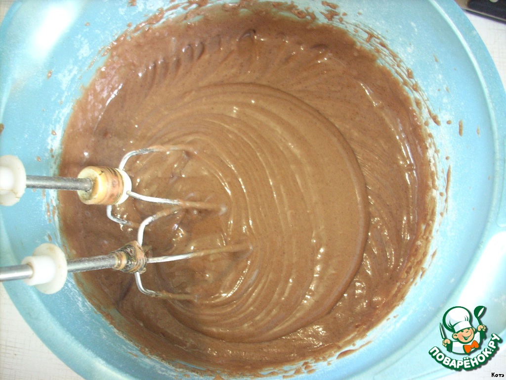 Добавить 1 стакан сметаны, 2 ст.л. сгущенного молока, 1 стакан просеянной муки и взбить.