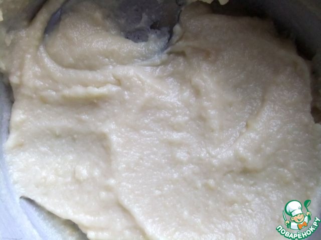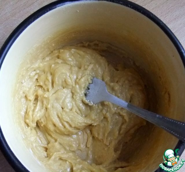 Пока печется бисквит, приготовить крем. Муку прокалить, постоянно помешивая, на сухой сковороде до светло-кремового цвета. Яйца взбить с сахаром, добавить муку и тщательно растереть до исчезновения комочков.