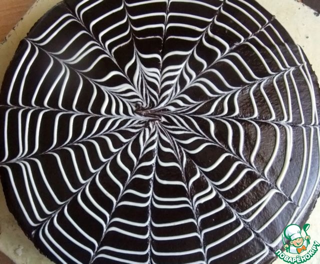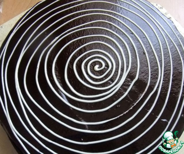 Нанести узор из корнетика с растопленным белым шоколадом.