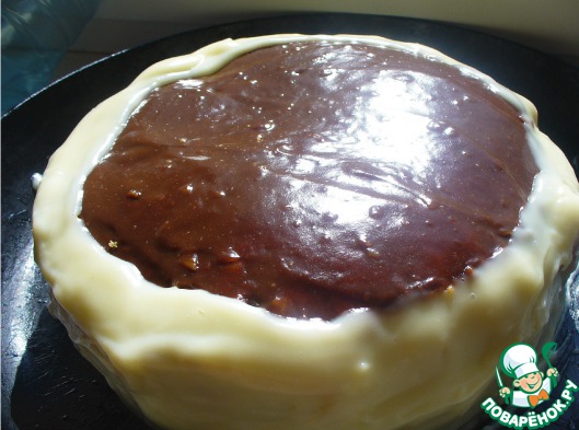 Сверху все еще промазать кремом, уложить верхушку, намазать ее кремом (я добавляла в него шоколад).